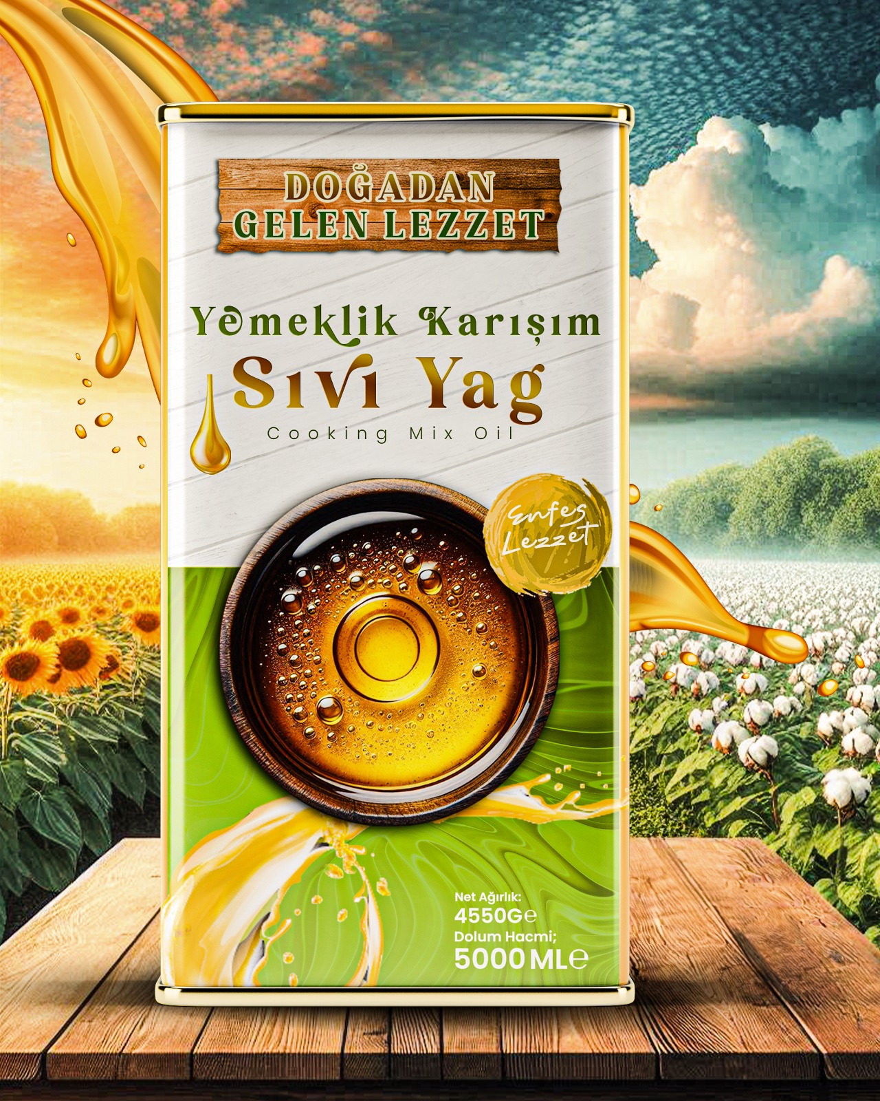 Doğadan Gelen Lezzet yemeklik karışım sıvı yağ, ayçiçek ve pamuk yağlarının ideal oranlarda harmanlanmasıyla üretilmiştir. Pamuk yağı, yemeklere eşsiz bir aroma kazandırırken, ayçiçek yağıyla birleşerek hafif ve sağlıklı bir kullanım sunar.